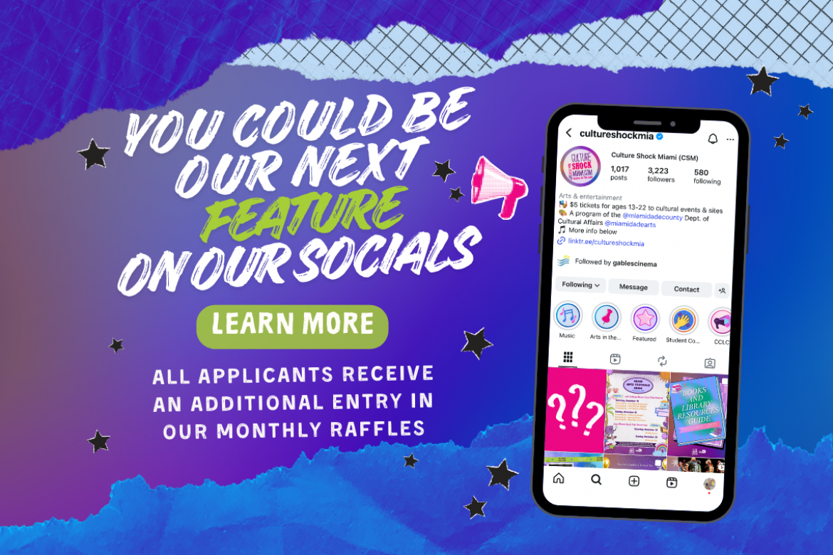Are you between the ages of 13-22 and passionate about Arts and Culture? We're looking for students to write blog posts about arts events in Miami-Dade County (and receive community service hours!).