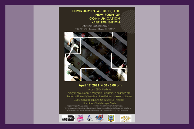Our current circumstances are not our permanent state. We are always becoming! Come experience Environmental Cues: The New Form of Communication on Saturday April 17, 2021, a relaxing and entertaining, in person, event at the Little Haiti Cultural Center with a deep message of understanding environmental cues of our time.