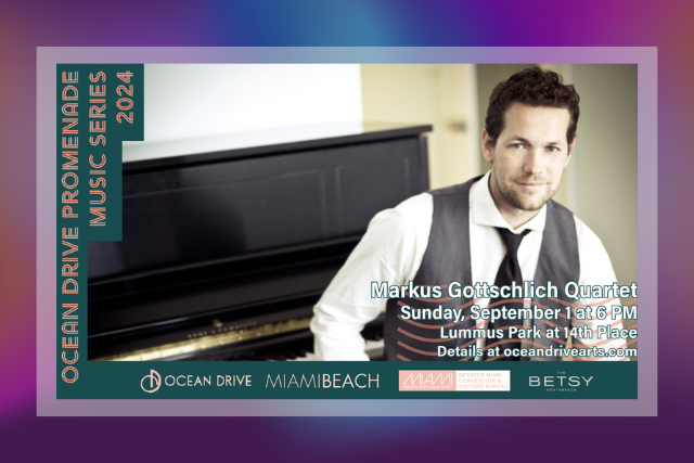 Join us on Ocean Drive on September 1st for a free performance from pianist Markus Gottschlich as part of the Ocean Drive Promenade Music Series, a free, weekly concert series presented by the Ocean Drive Association.