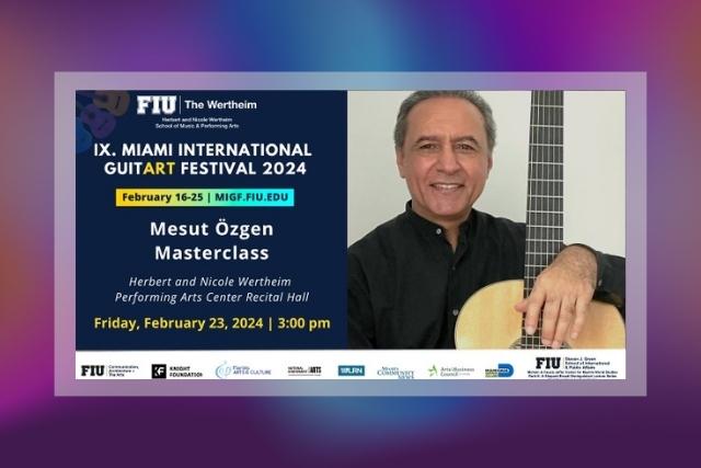 The 2024 Miami International GuitART Festival presents a masterclass conducted by virtuoso guitarist Mesut Özgen at the WPAC Instrumental Hall. Taught by the festival artists, the MIGF masterclasses and workshops offer students of all ages and levels a friendly and highly informational learning environment.